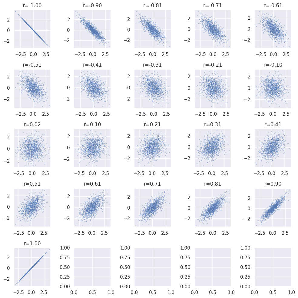 相関係数を変化させながら一覧でプロットしてみると、まさに百聞は一見にしかず。